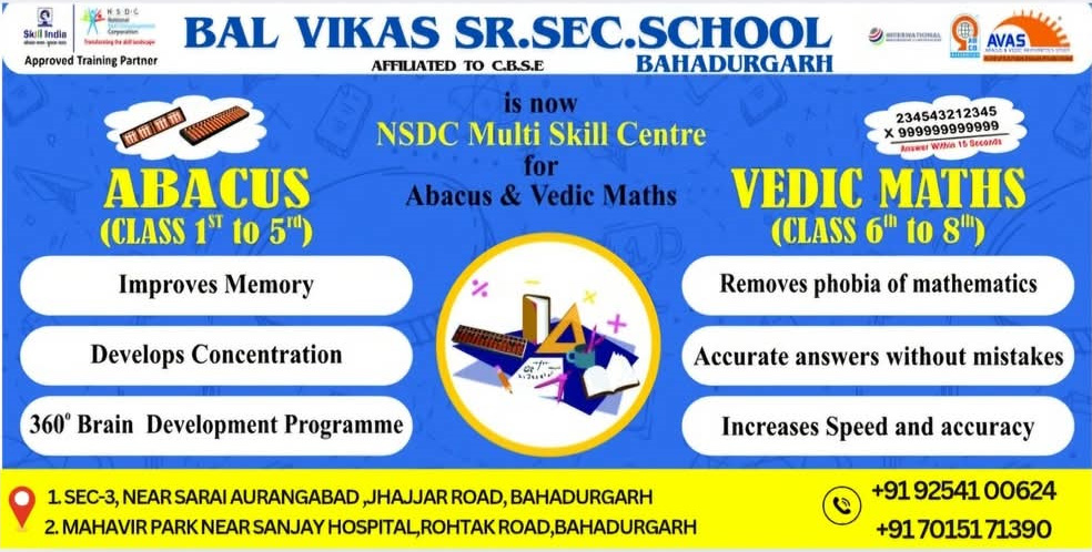 Bal Vikas Sr. Sec. School in the service of quality education, stands fully prepared today to meet the challenges of the changing times. School provides all possible avenues to the students for having rich learning experience by providing them.